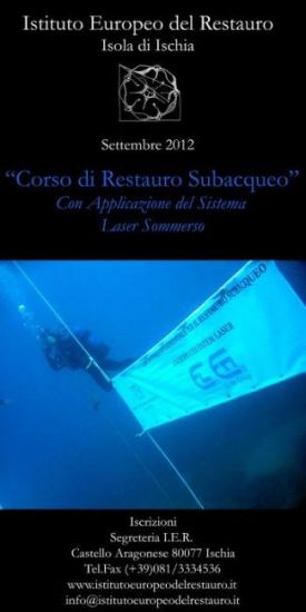 L'Istituto Europeo di Restauro - Isola di Ischia - organizza dal 5 al 12 settembre 2012 il primo corso per restauratore subacqueo. Dal brevetto di immersione al campo archeologico sommerso