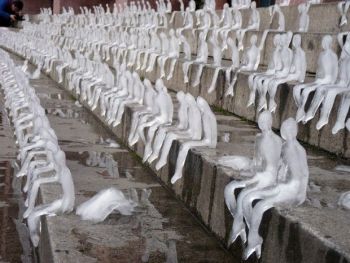 Ghiaccio che si trasforma in acqua e che si scioglie davanti ai nostri occhi e sembra volerci comunicare l'effimera e temporale esistenza nonché la nostra dipendenza dal mondo della natura e dai suoi elementi come l’acqua appunto. Delle presenze che nella loro semplicità ci comunicano un angoscia "estinzionale". Ed è in questi spazi urbani che sono le piazze, che meglio si esprime il messaggio di riconquista dello spazio stesso destinato alla gente e per la gente. Non più figure storiche, eroi di altri tempi che si ergono su piedistalli distanti come simboli e modelli di un passato che è remoto nei suoi valori.