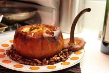 Intanto scaldate con un pò di olio in un padellino antiaderente i filetti di acciuga a fiamma dolce.Cuocete la pasta in abbondante acqua salata, scolatela al dente e versatela nella padella con il condimento. (Ricordatevi di versarci un pò di acqua della cottura della pasta). Unite la salsina di acciughe e terminate la cottura a fiamma media, facendo saltare il tutto in pochi istanti. Trasferite la pasta in una bella zucca arancione svuotata, ( possibilmente la stessa che avete svuotato ), cospargetela con il finocchietto tritato e portate subito in tavola. E adesso vi siete meritate e meritati anche il video dei Guns n’ Roses con Sir Elton John agli "Mtv video music awards" del 1992. God save the queen and my husband!