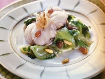 Due, tre cose che so sulla Rana pescatrice. Dunque, per essere sicuri che sia fresca, la rana pescatrice deve essere acquistata intera, con tutta la testa, con la quale fra l’altro si possono cucinare ottime zuppe di pesce. Con il fegato si possono preparare ottimi crostini. Se pulita e senza testa, già pronta all'uso, cambia nome: si “fa chiamare” Coda di rospo. Lei passa la maggior parte del tempo a pel di sabbia sul fondo del mare, in attesa delle prede che gli cadono letteralmente in bocca dal cielo un attimo dopo aver sfiorato la sua antennina: skyfall. E' un pesce tenace e orgoglioso ma dalle carni magre. Il suo sapore è diverso a seconda della provenienza: quelle pescate in Adriatico hanno carni sode ed un gusto delicato, quelle pescate in Sicilia per la diversa alimentazione a volte hanno carni con un sapore più intenso. E adesso a noi, preparete il pentolame e sotto con la ricetta. Per questa ricetta servono dei tranci, quindi, in pescheria fatevi affettare la coda di rospo oppure affidatevi a quelli già impacchettati e surgelati, comunque scegliate non ve ne pentirete. Dimenticavo, per questa ricetta non potete fare a meno di alcune foglie di scarola "croccante", insomma, che non sia "moscia". Anche perché ci pensereno noi ad "ammosciarle" con l'uvetta. Mi raccomando, ancora: una "pescatrice", una "foglia". Sarà una pietanza gustosa, veloce, invernale. E non perdetevi il video allegato: underwater con 007. Skyfall!